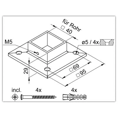 - zum Anschließen eines Rohres 40x40mm an die Wand