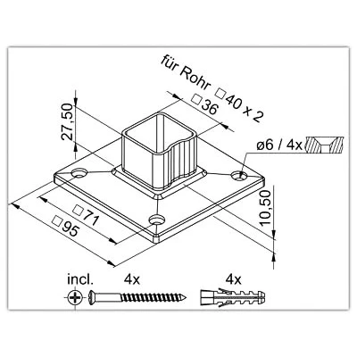 - Bodenflansch für Rohr 40 x 40 x 2,0mm