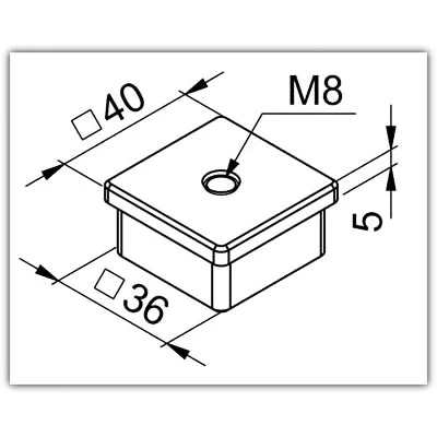 Endkappe für Rohr 40 x 40 x 2,0mm Gewinde M8