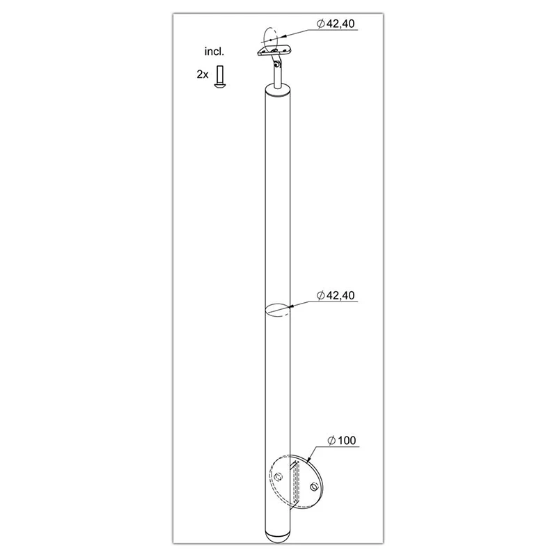 - Geländerpfosten ø42,4 x 3,0mm im montagefertigen Zustand